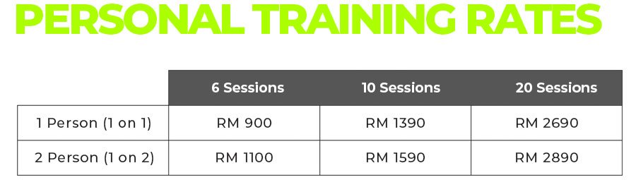- Training that is more focused on specific targets such as develop strength, bodytoning, reduce stubborn bodyfats %, weight loss, build muscle mass, weight gain, mobility/agility training and it is also suitable for those who just want to feel healthier and fitter.
